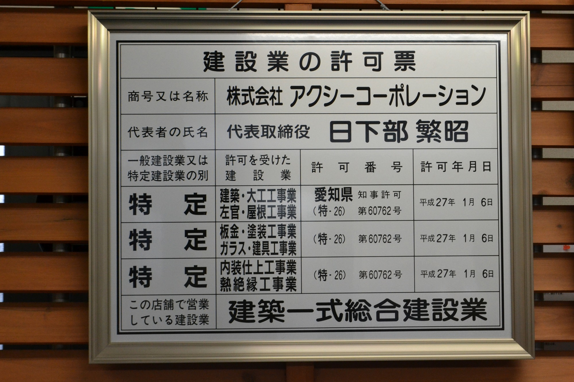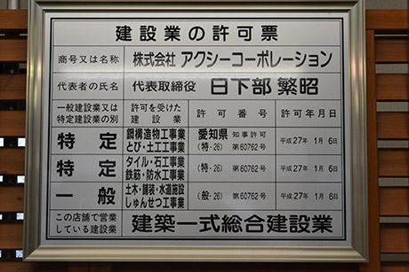 ●愛知県知事 許可(特-26)第60762号 ●愛知県知事 許可(般-26)第60762号 ●愛知県知事 登録(い-28)第11327号 |