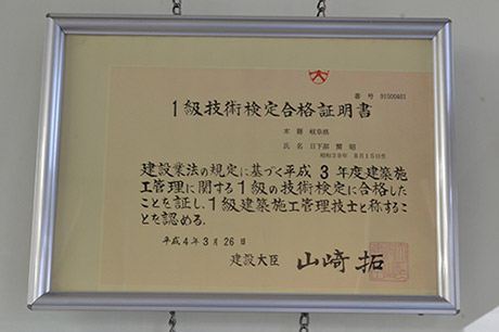 | ■保有資格 | ●一級建築士 ●二級建築士 ●一級建築施工管理技士 ●二級建築施工管理技士 ●二級土木施工管理技士 ●指定建設業管理技術者 ●応急危険度判定士 ●木造住宅耐震診断士 ●枠組壁工法耐火建築物設計・工事管理者登録 ●枠組壁工法耐火建築物検査員登録 |
