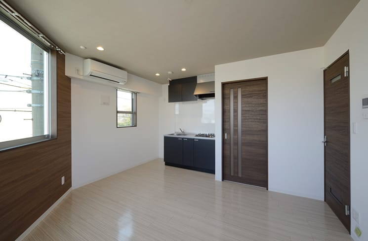内部は、ワンルームなのですがスタイリッシュな仕上りとなりました。